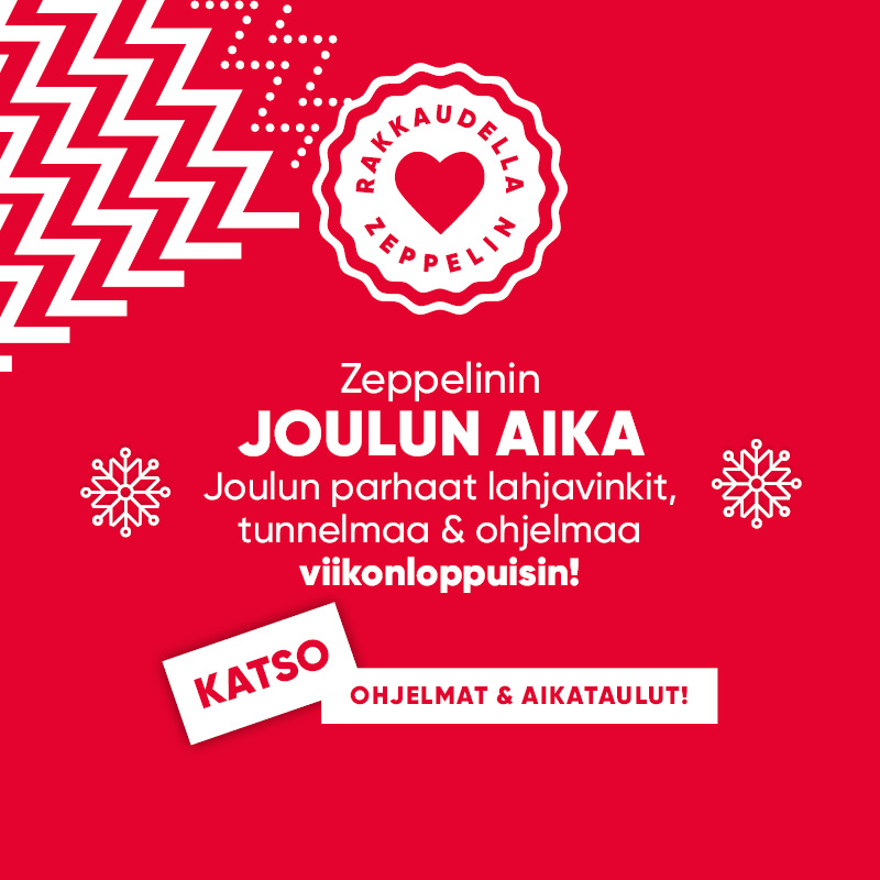 JOULUN SÄVELIÄ JA HYVÄN TUULEN OHJELMAA ENNEN JOULUAATTOA Zeppelinin jouluiset viikonloput ennen aattoa vietetään mukavan ja hyväntuulisen jouluohjelman parissa. Lauantaisin ja […]
